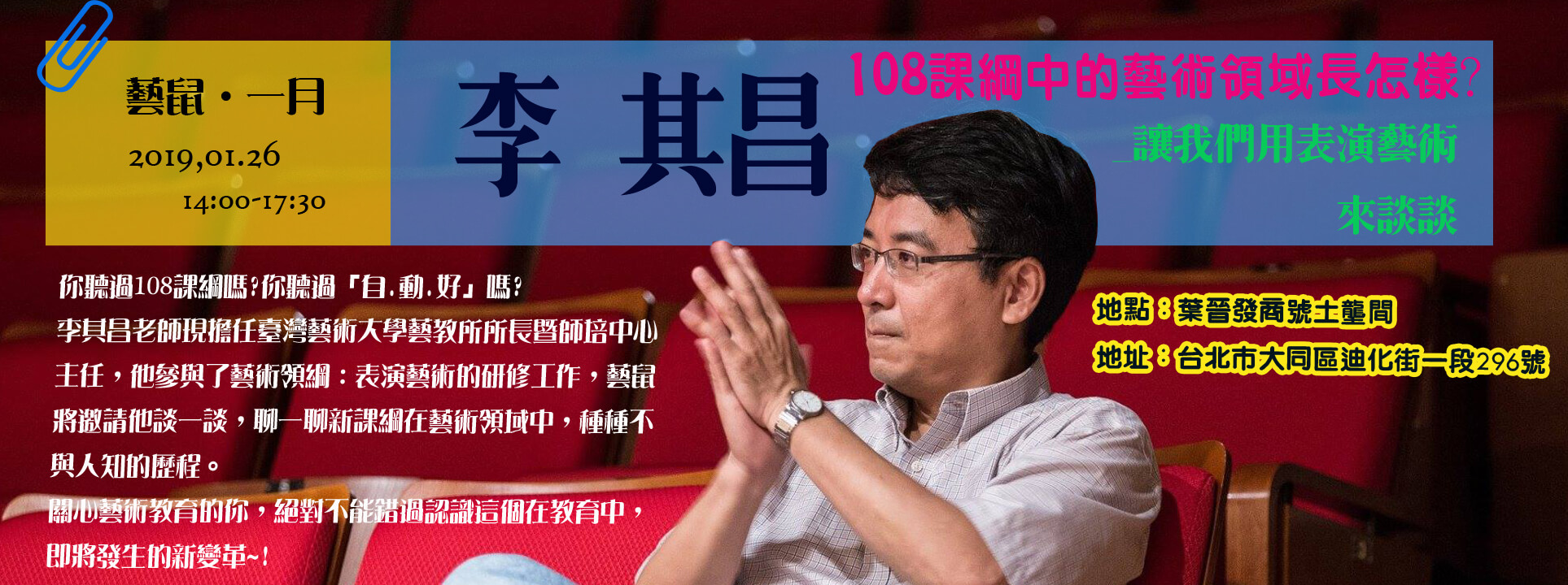 2019.1月藝鼠:108課綱中的藝術領域長怎樣?:讓我們用表演藝術來談談